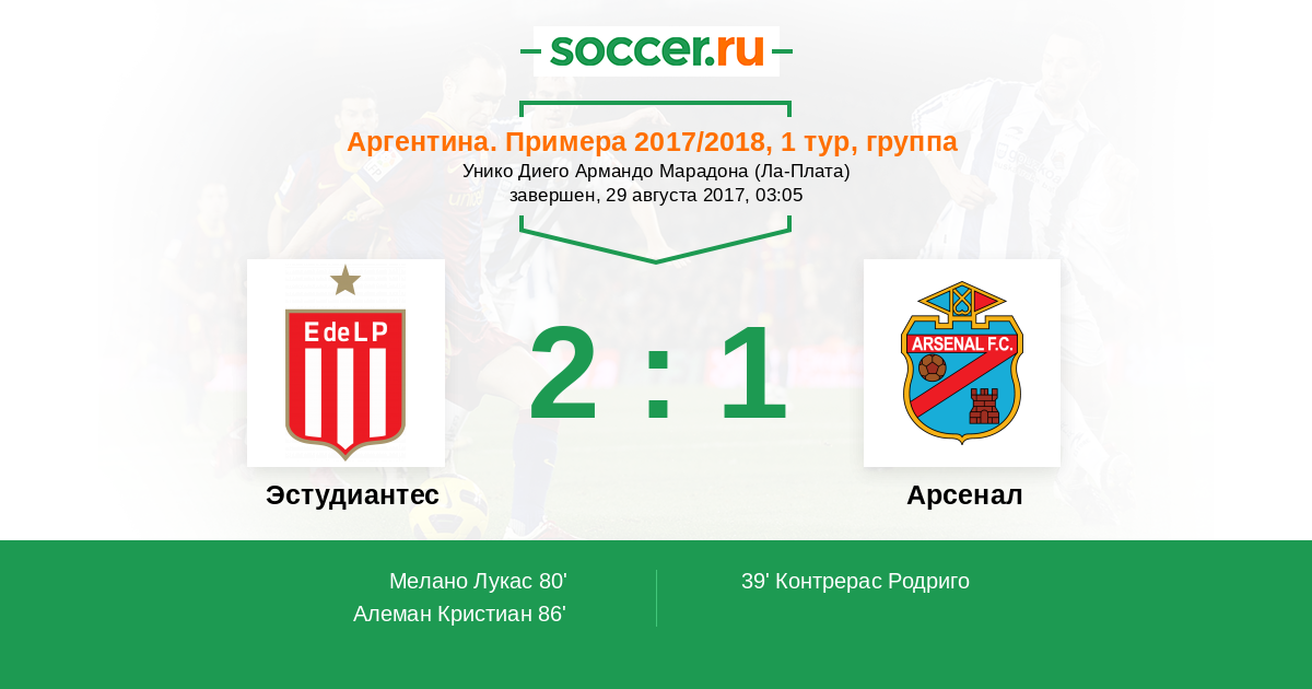 Протокол матча Эстудиантес против Арсенал