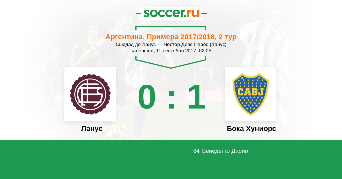 Протокол матча Ланус против Бока Хуниорс