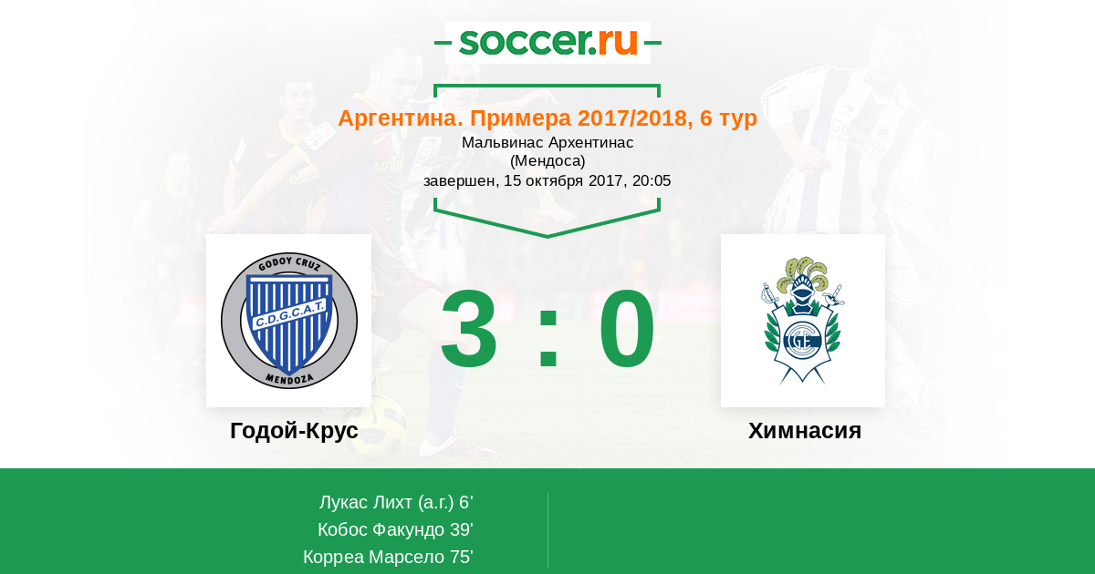 Протокол матча Годой-Крус против Химнасия