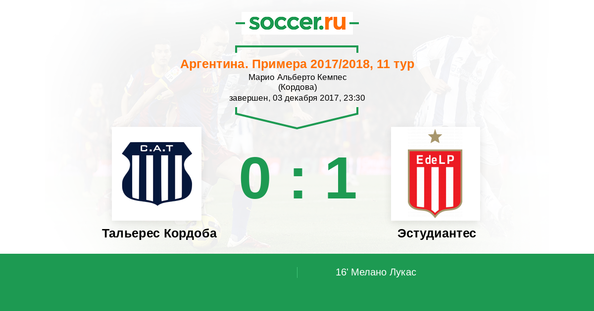 Протокол матча Тальерес Кордоба против Эстудиантес