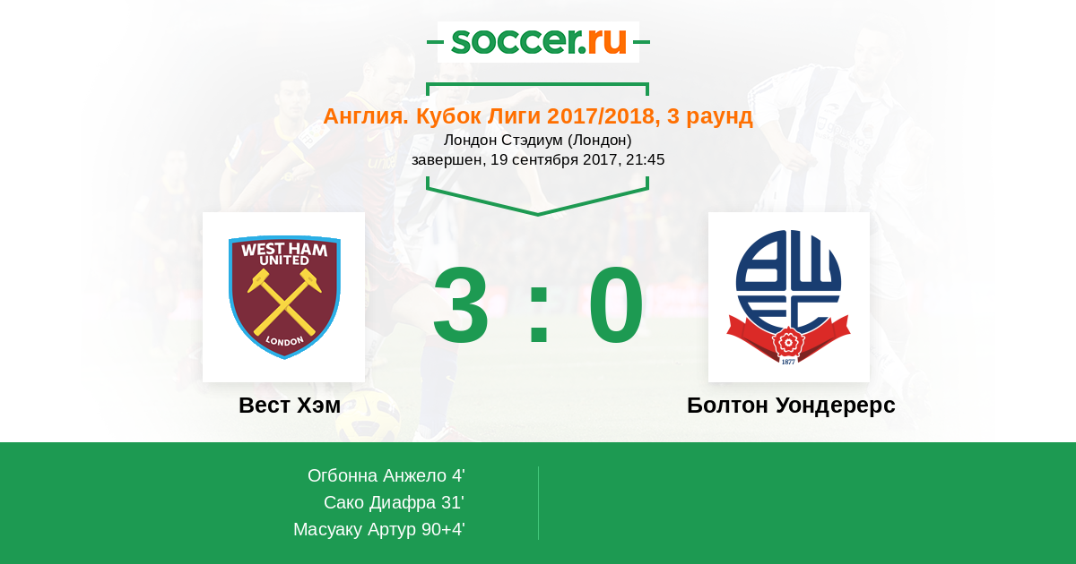 Протокол матча Вест Хэм против Болтон Уондерерс