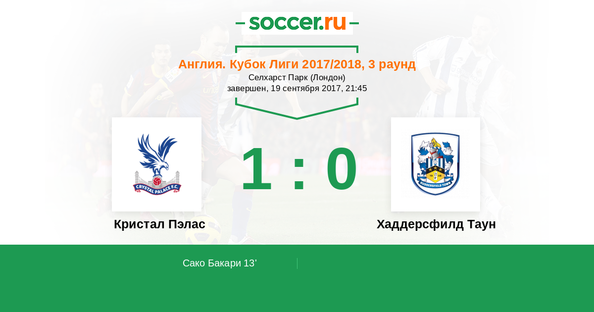 Протокол матча Кристал Пэлас против Хаддерсфилд Таун