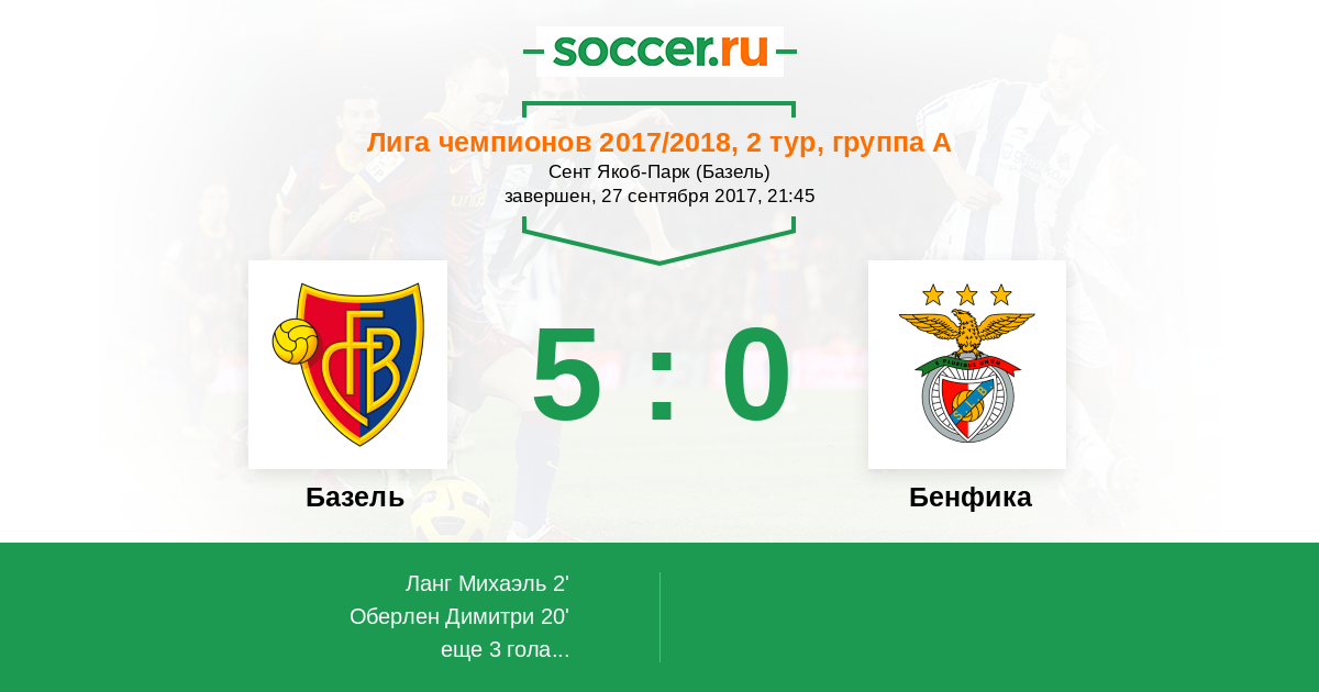 Протокол матча Базель против Бенфика