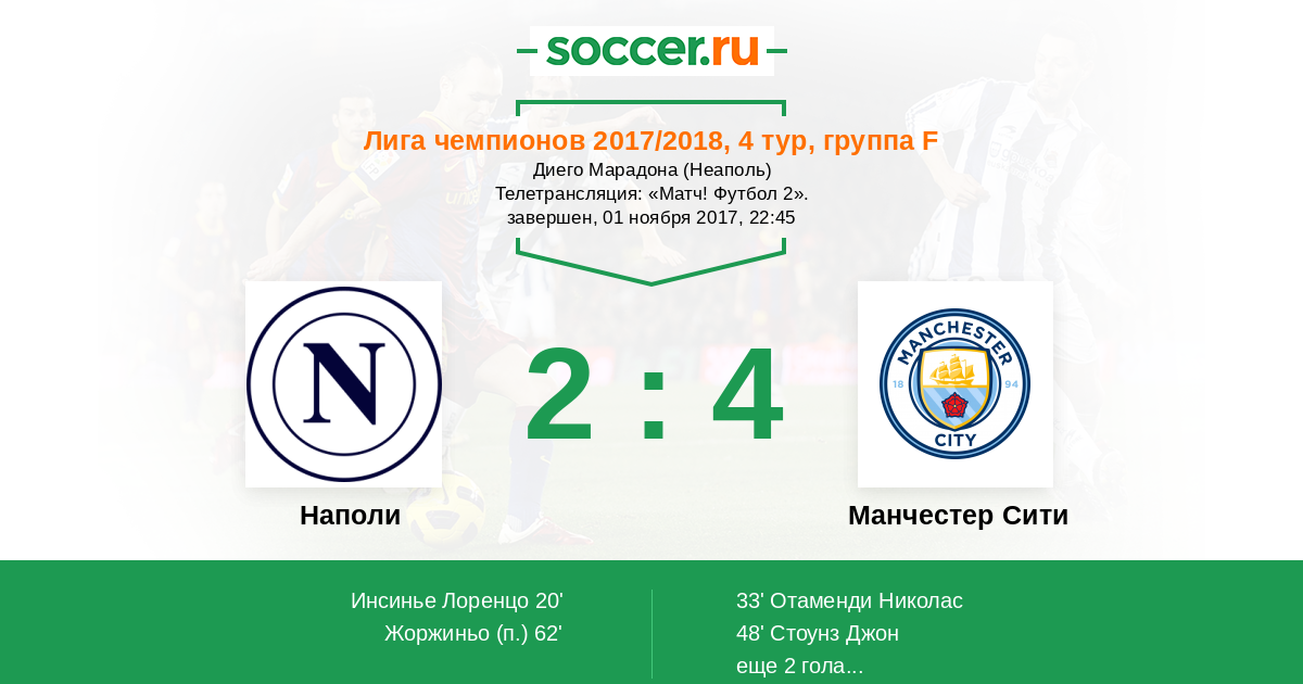Протокол матча Наполи против Манчестер Сити