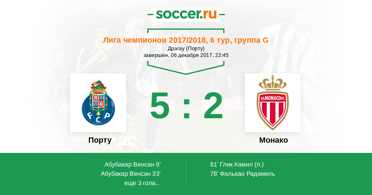 Протокол матча Порту против Монако