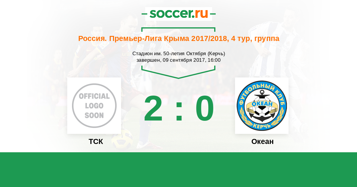 Россия. Премьер-Лига Крыма 23.04.2017 Океан Логотип футбольный клуб Океан (Керчь) 6:1 Логотип футбольный клуб ТСК (Симферополь) ТСК