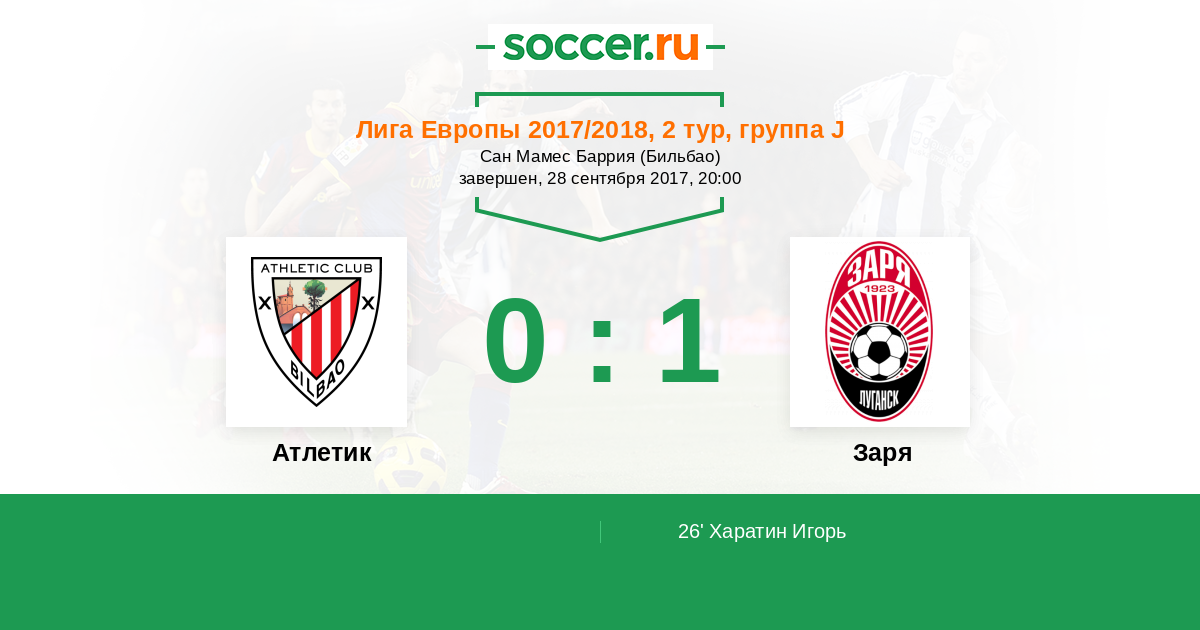 Протокол матча Атлетик против Заря