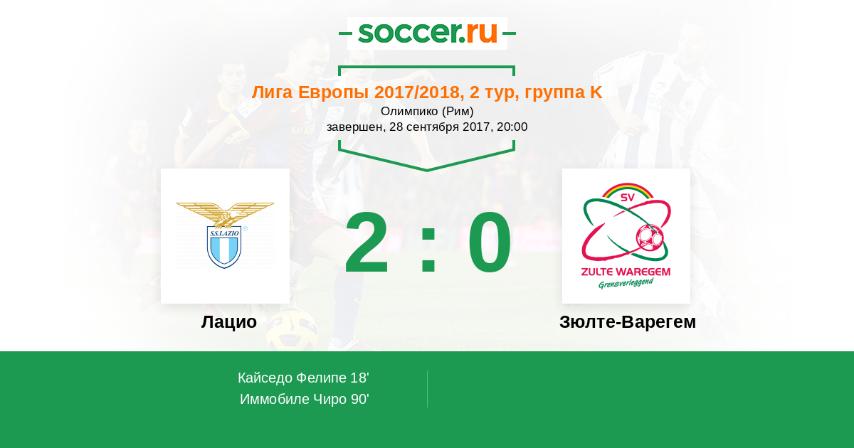 Протокол матча Лацио против Зюлте-Варегем