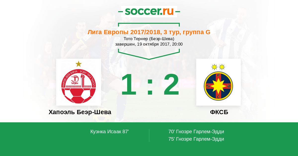Протокол матча Хапоэль Беэр-Шева против ФКСБ