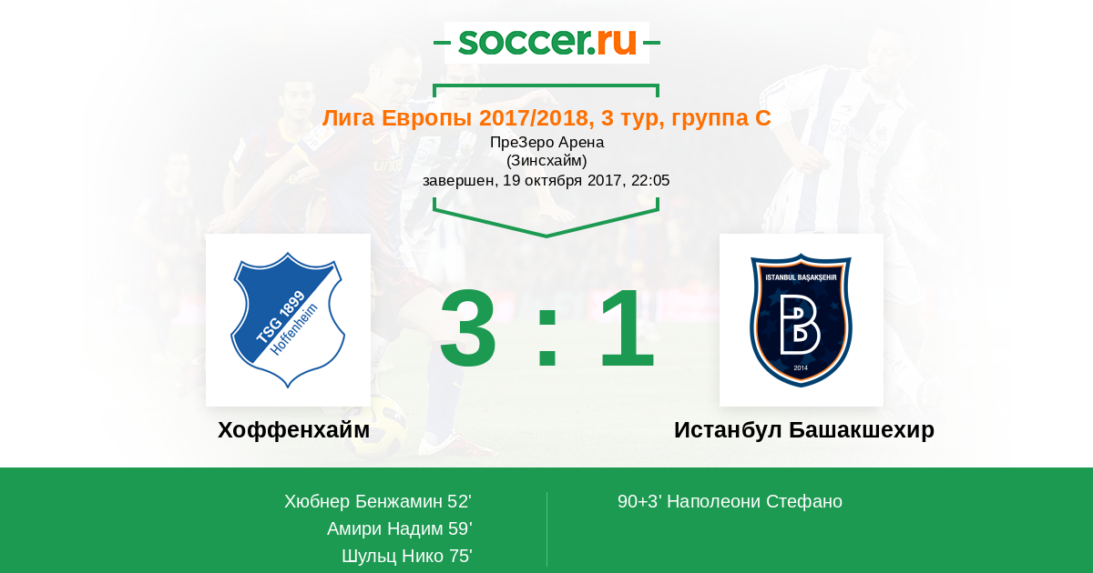 Протокол матча Хоффенхайм против Истанбул Башакшехир