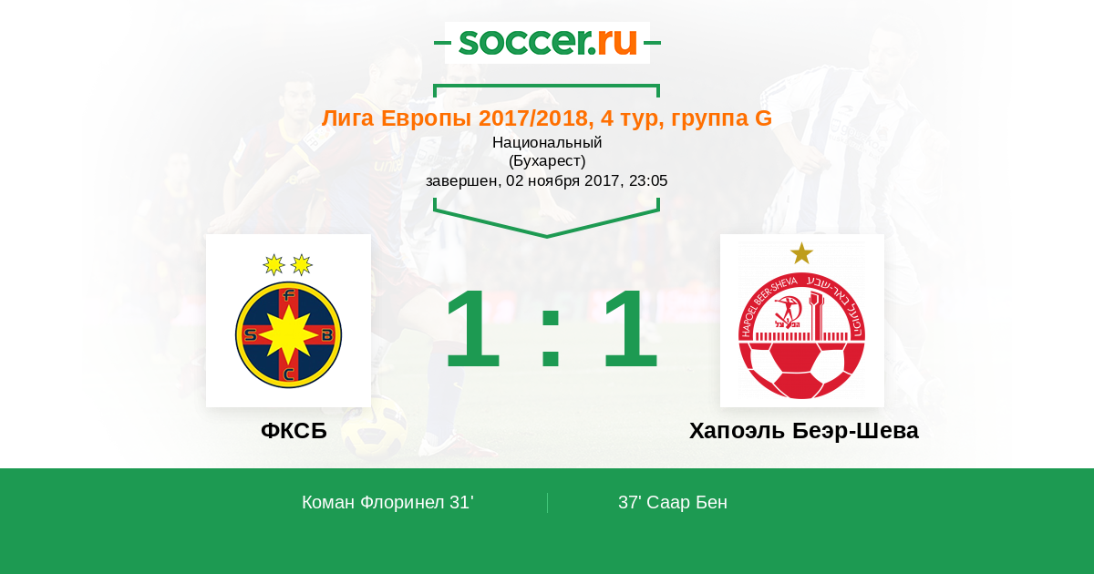 Протокол матча ФКСБ против Хапоэль Беэр-Шева