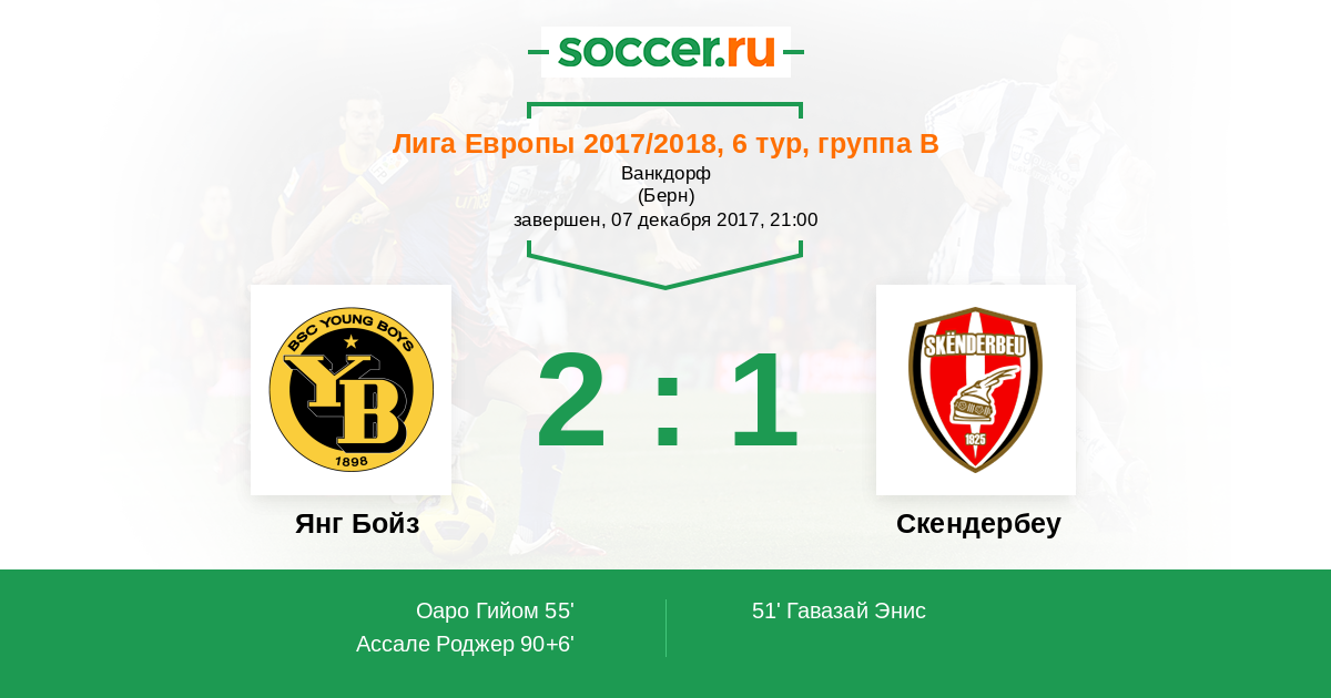 55' (1:1) Оаро Гийом (99) (Эбишер Мишель (20))