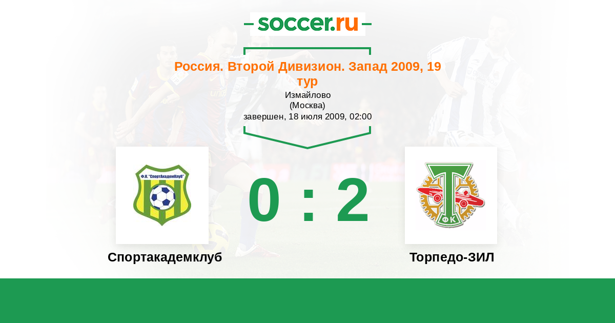 Россия. Вторая лига. Группа 2 31.10.2009 Торпедо-ЗИЛ Логотип футбольный клуб Торпедо-ЗИЛ (Москва) 1:1 Логотип футбольный клуб Спортакадемклуб (Москва) Спортакадемклуб
