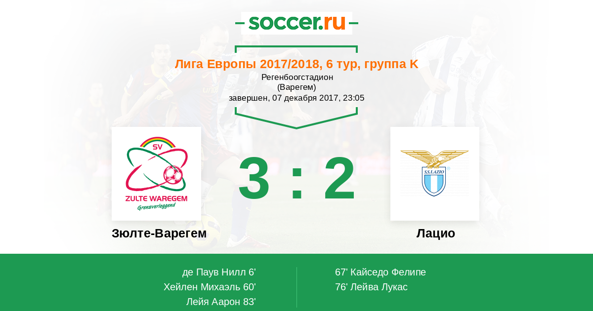 Протокол матча Зюлте-Варегем против Лацио