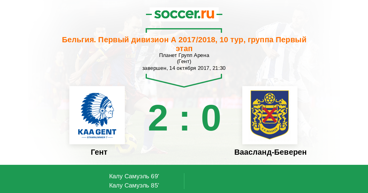 Протокол матча Гент против Ваасланд-Беверен