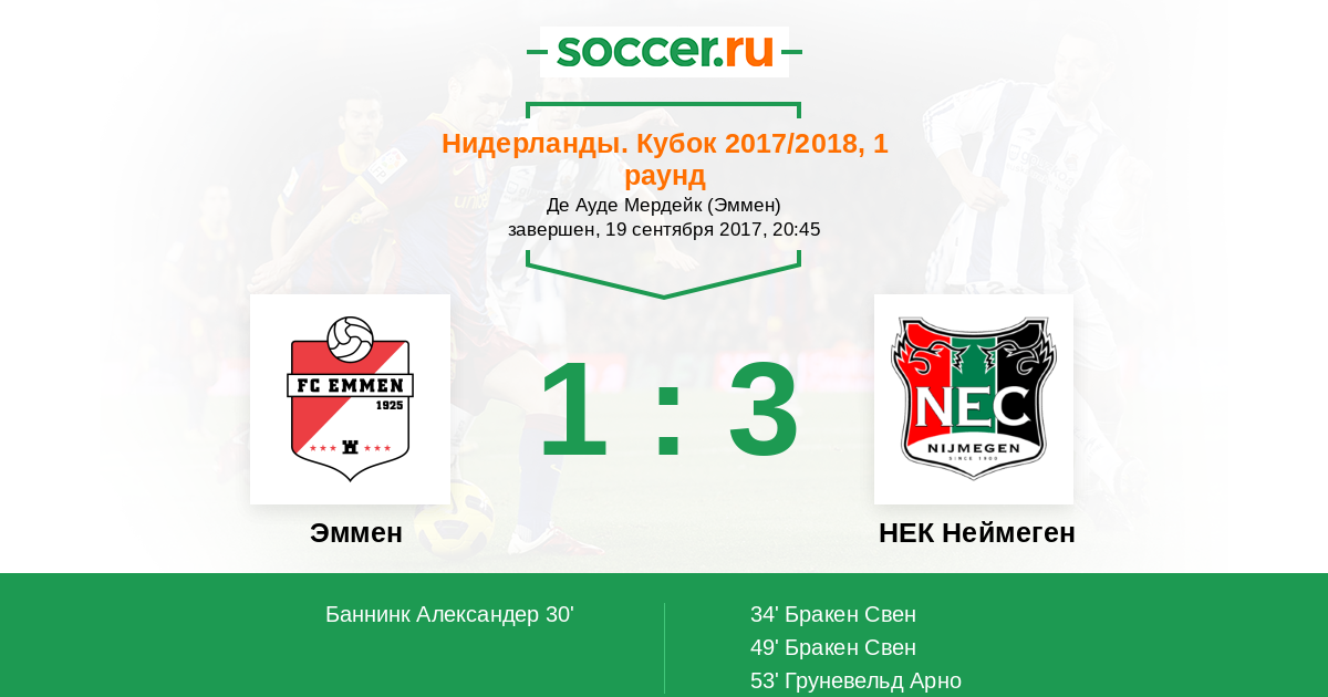 Протокол матча Эммен против НЕК Неймеген