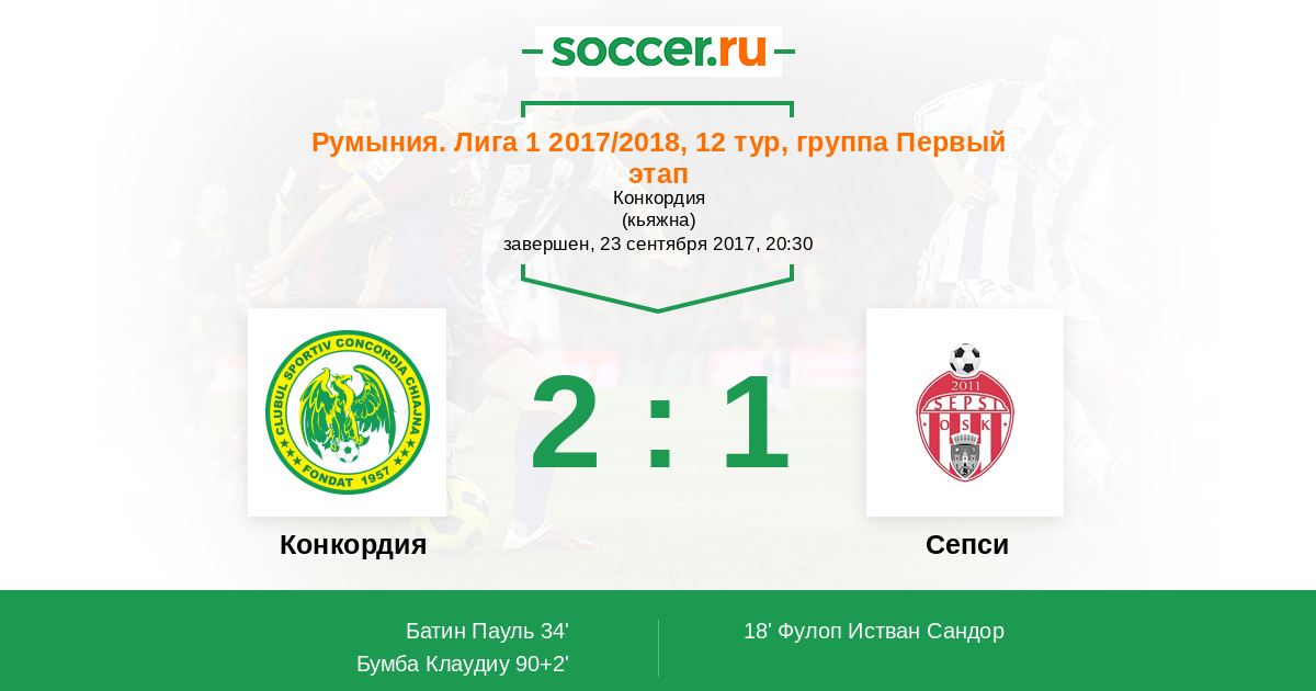 18' (0:1) Фулоп Истван Сандор (24) (Хаднагу Атилла (80))