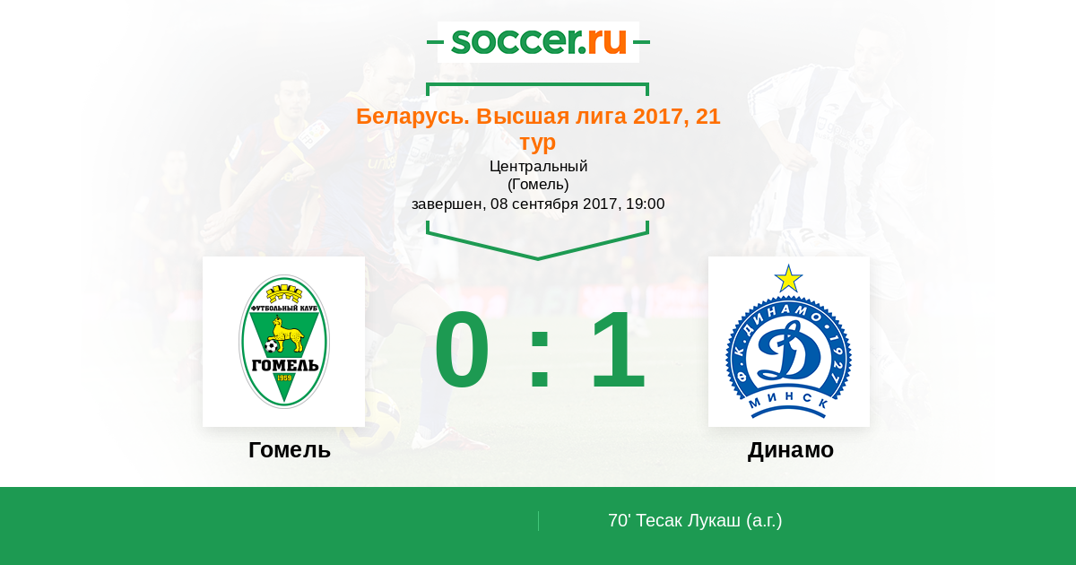 Протокол матча Гомель против Динамо