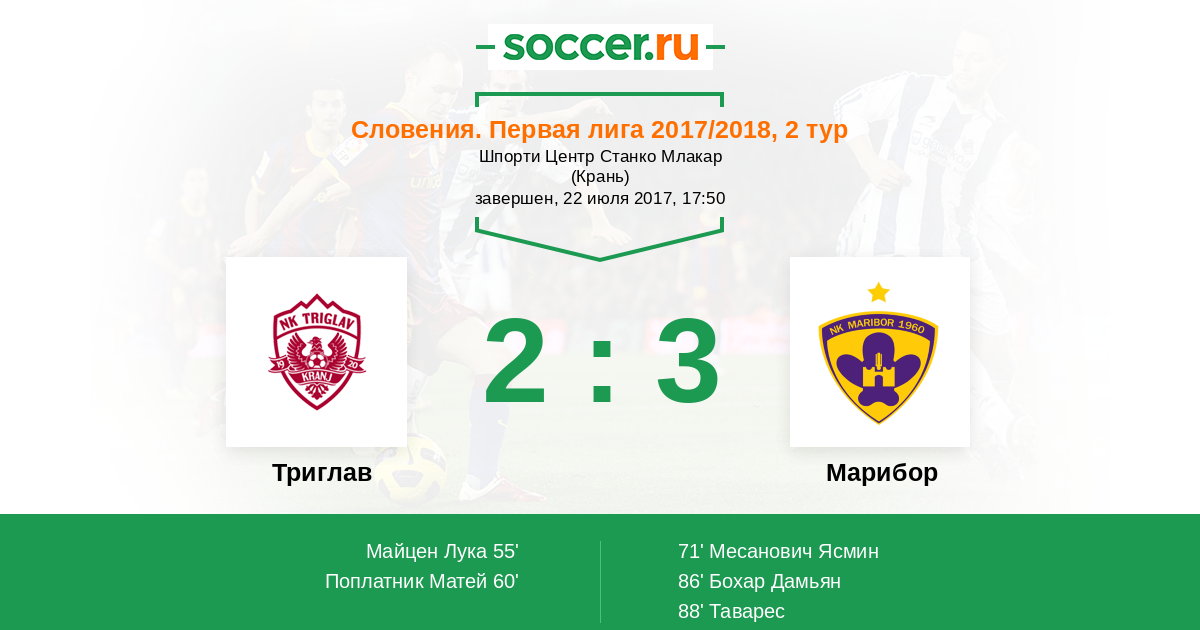 Протокол матча Триглав против Марибор