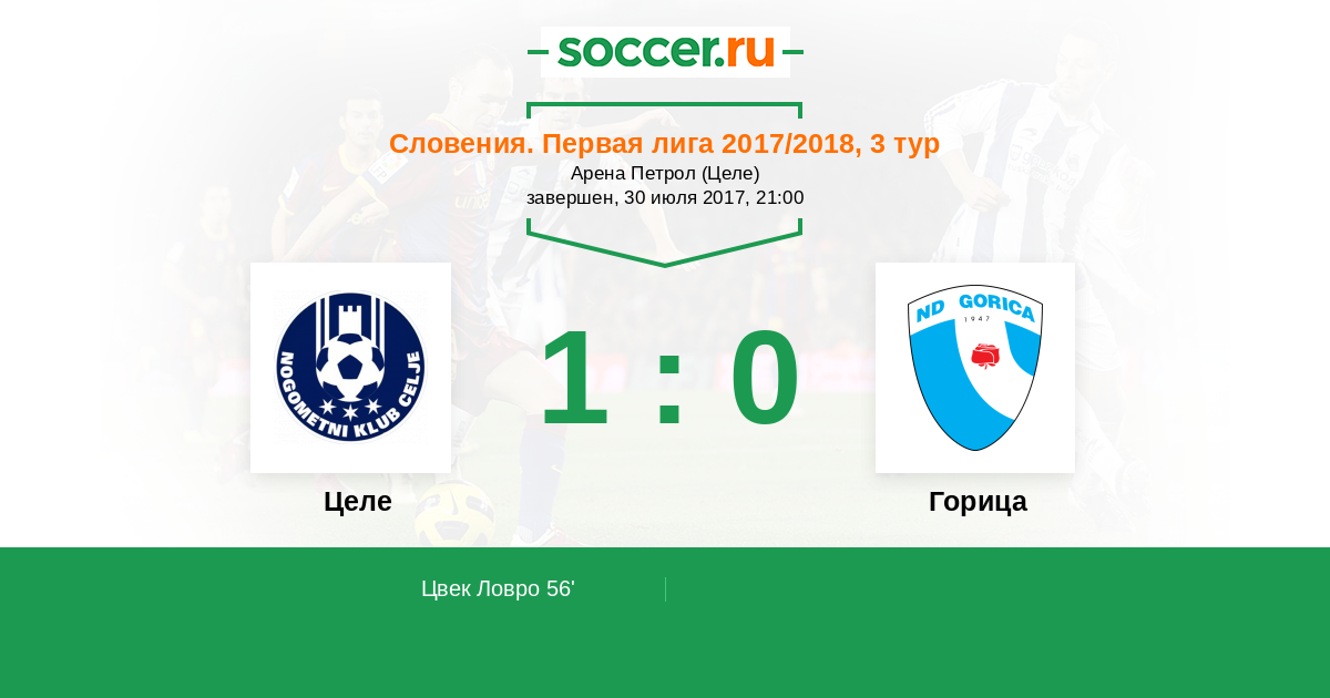 Протокол матча Целе против Горица