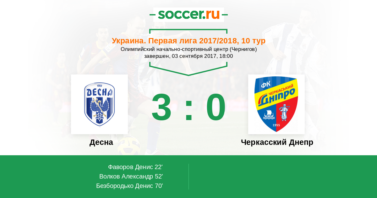 Протокол матча Десна против Черкасский Днепр