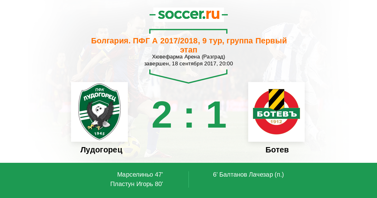 Протокол матча Лудогорец против Ботев