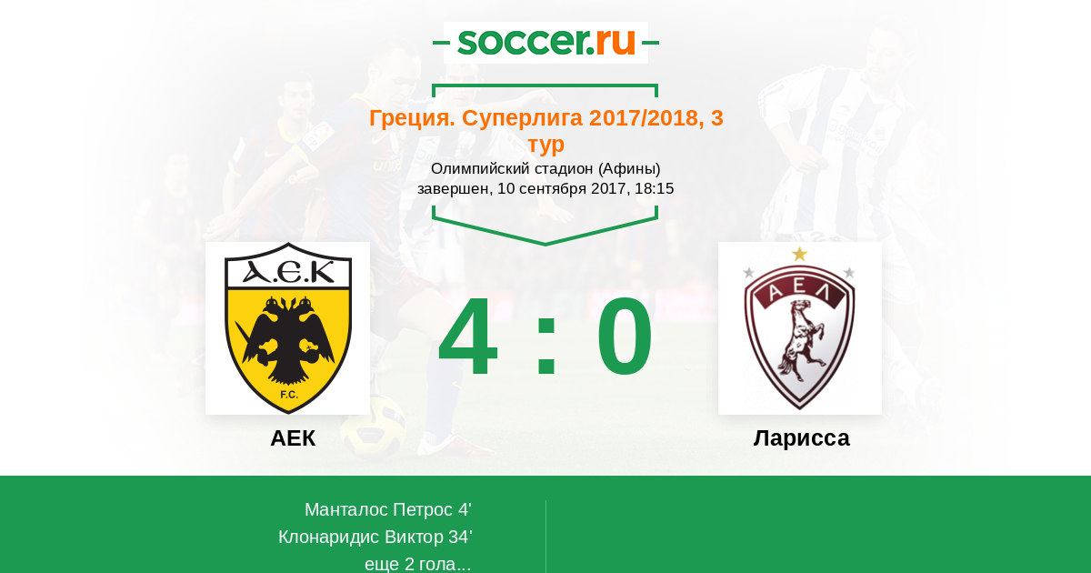 4' (1:0) Манталос Петрос (20) (Бакакис Михалис (2))