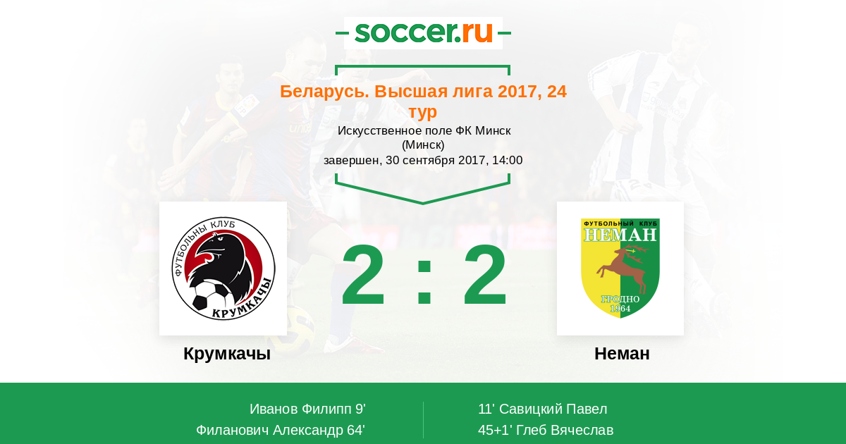 Протокол матча Крумкачы против Неман