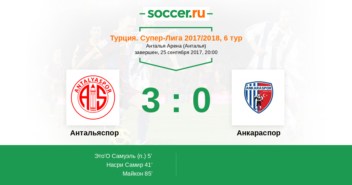 Протокол матча Антальяспор против Османлыспор