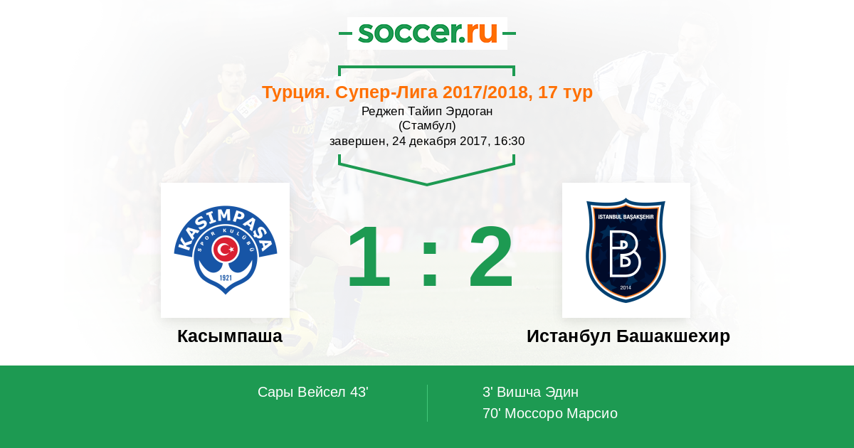 Протокол матча Касымпаша против Истанбул Башакшехир