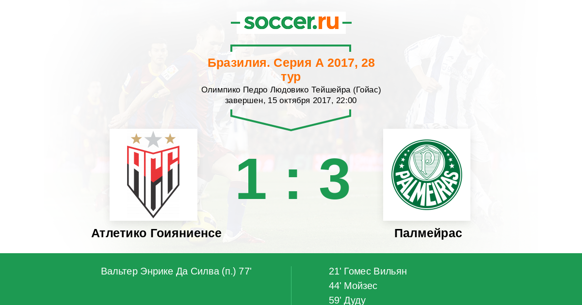 Протокол матча Атлетико Гоияниенсе против Палмейрас