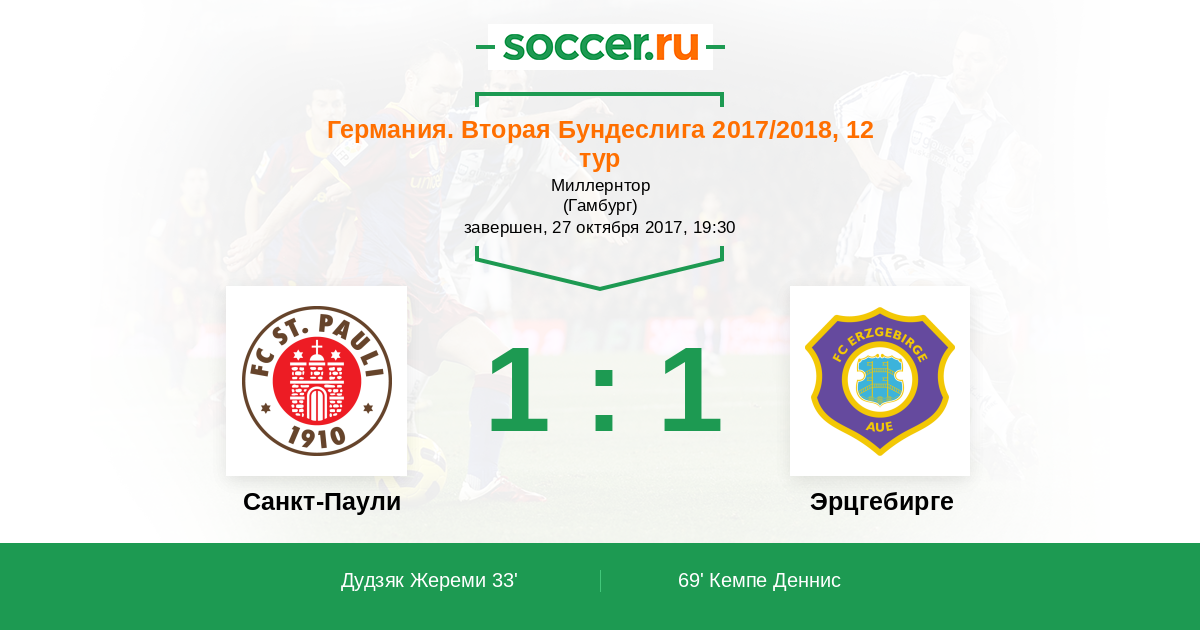 Протокол матча Санкт-Паули против Эрцгебирге