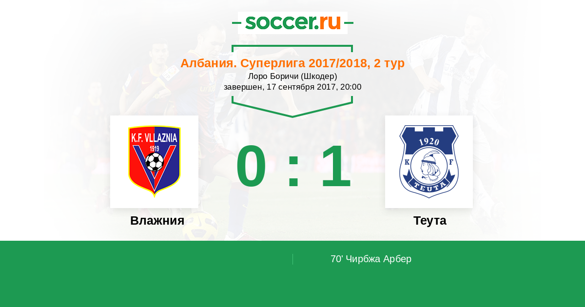 Протокол матча Влажния против Теута