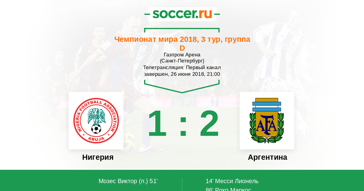 Протокол матча Нигерия против Аргентина