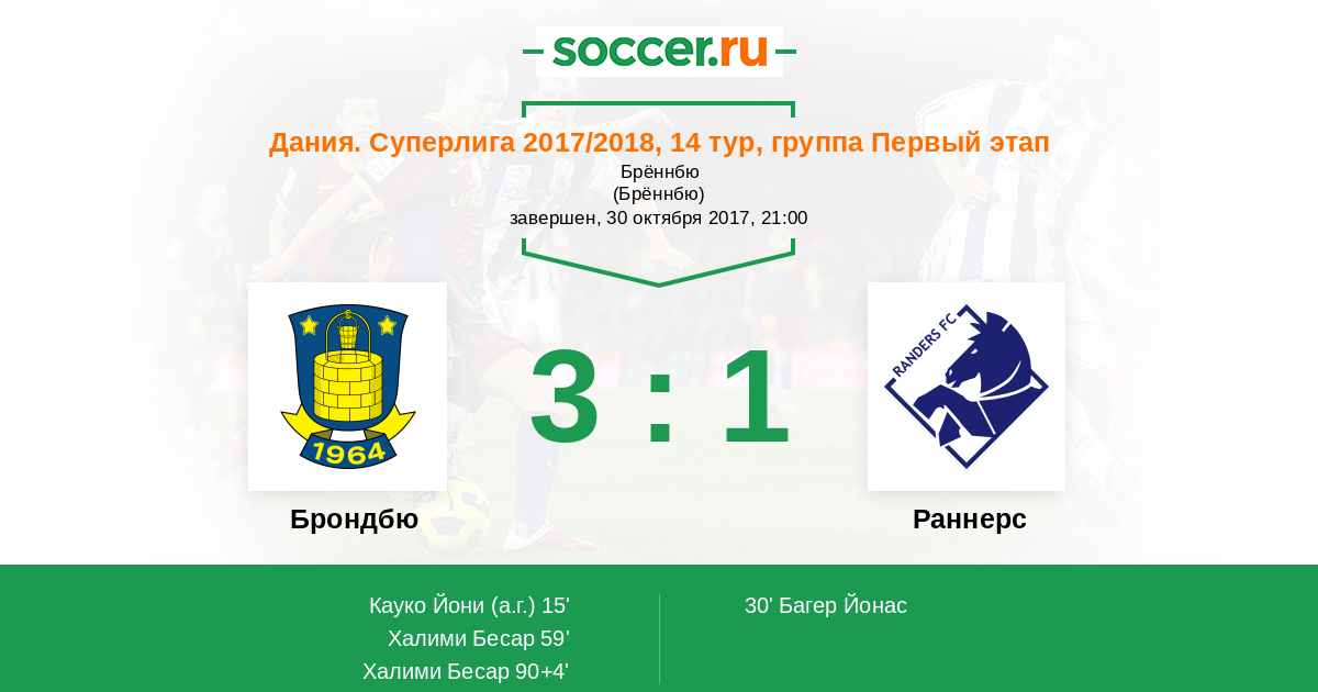 Протокол матча Брондбю против Раннерс