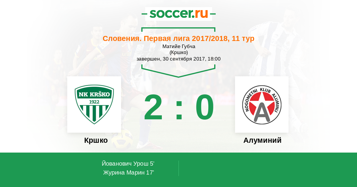 Протокол матча Кршко против Алуминий