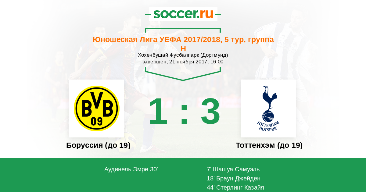 Протокол матча Боруссия (до 19) против Тоттенхэм (до 19)