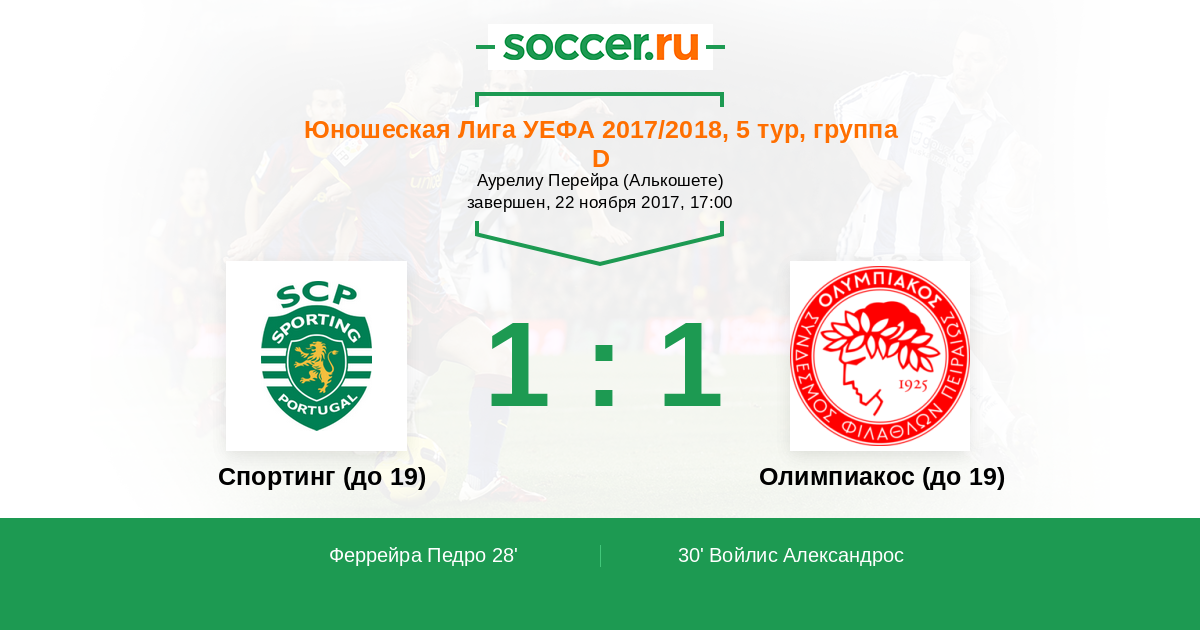 Протокол матча Спортинг (до 19) против Олимпиакос (до 19)