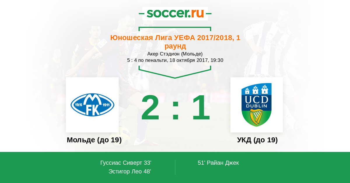 Протокол матча Мольде (до 19) против УКД (до 19)
