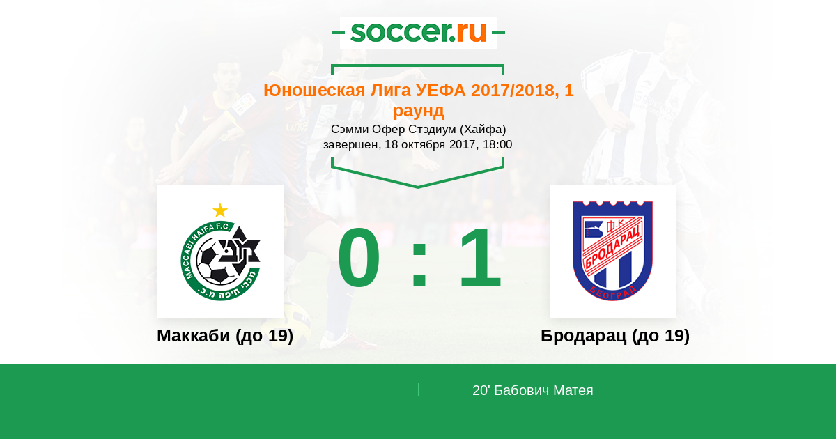 Протокол матча Маккаби (до 19) против Бродарац (до 19)