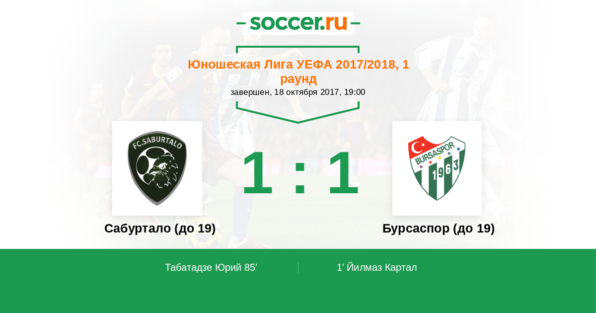 Протокол матча Сабуртало (до 19) против Бурсаспор (до 19)