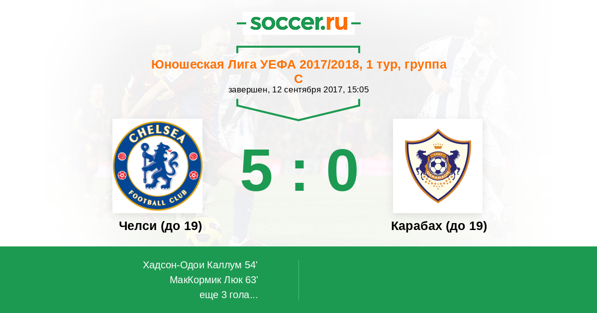 Протокол матча Челси (до 19) против Карабах (до 19)