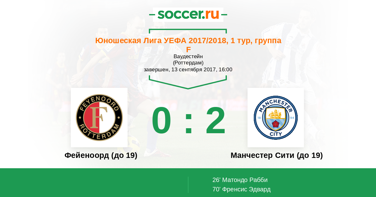Протокол матча Фейеноорд (до 19) против Манчестер Сити (до 19)