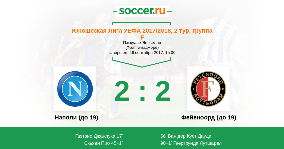 Протокол матча Наполи (до 19) против Фейеноорд (до 19)