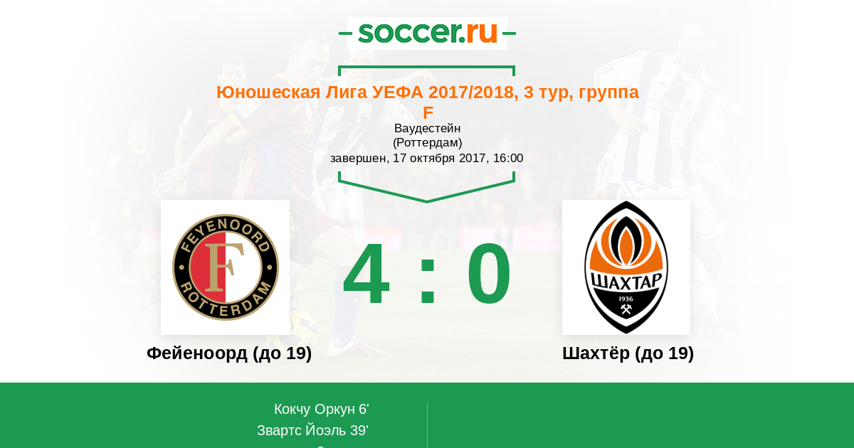 Протокол матча Фейеноорд (до 19) против Шахтёр (до 19)