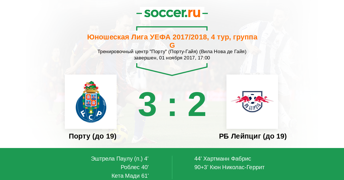 Протокол матча Порту (до 19) против РБ Лейпциг (до 19)