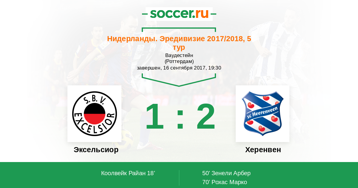 Протокол матча Эксельсиор против Херенвен
