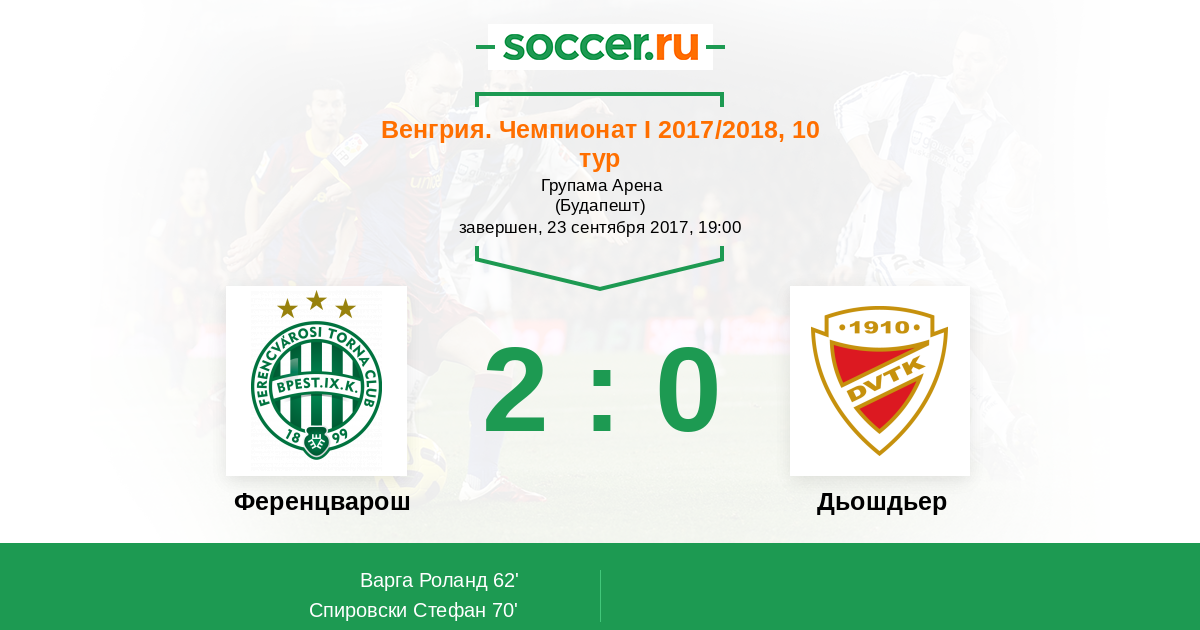 Протокол матча Ференцварош против Дьошдьер