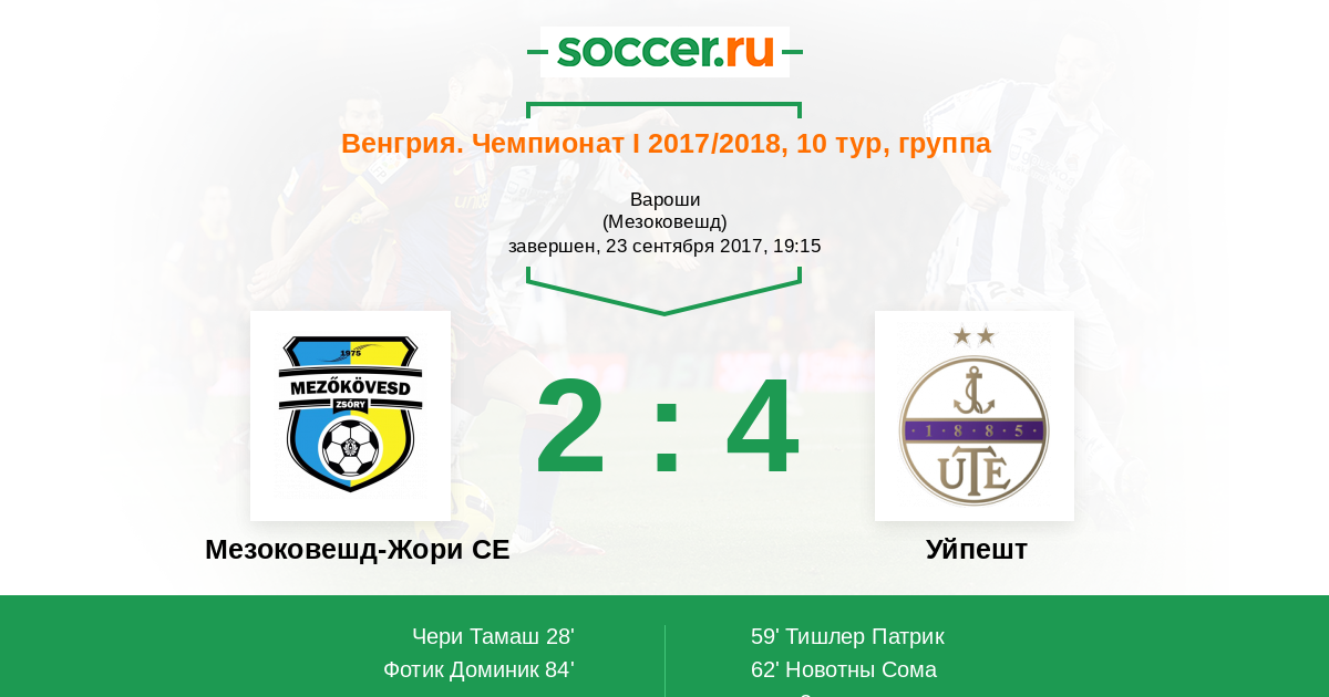 Протокол матча Мезоковешд-Жори СЕ против Уйпешт
