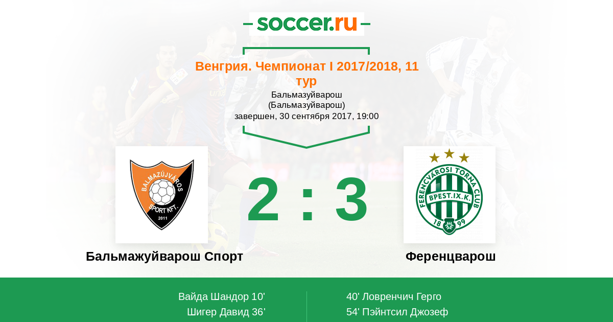 Протокол матча Бальмажуйварош Спорт против Ференцварош